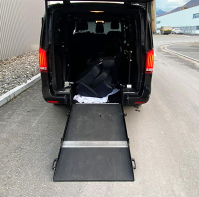 Sicherer, komfortabler Transport für Fahrgäste mit Rollstuhl – mit speziell ausgerüstetem Fahrzeug.